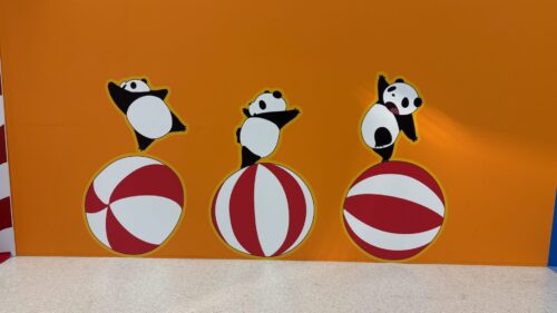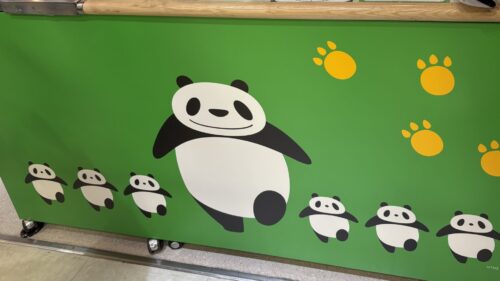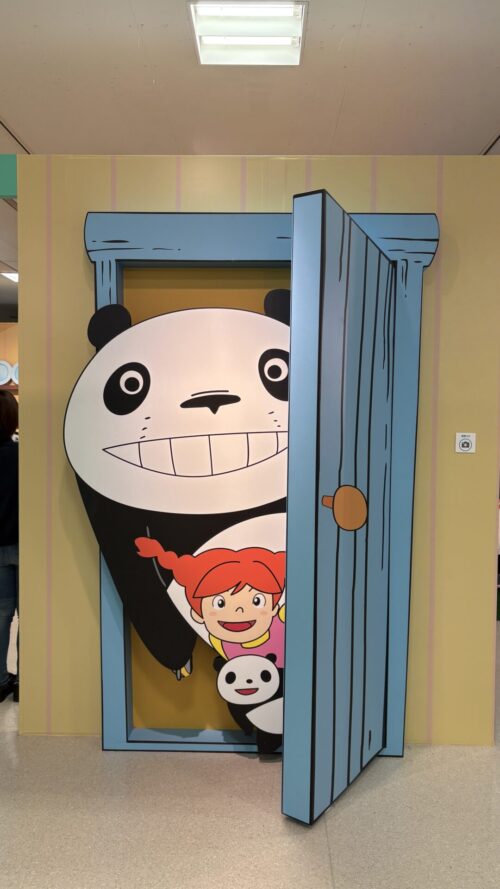 会場の5階へ向かうエスカレーター前はパンダコパンダのラッピングが
