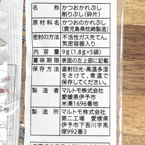 香りは包装されるまでに少し飛んでいますが、ふんわりカツオブシの香りがします