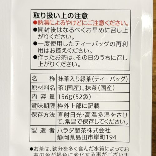 抹茶入り緑茶 ティーバッグ